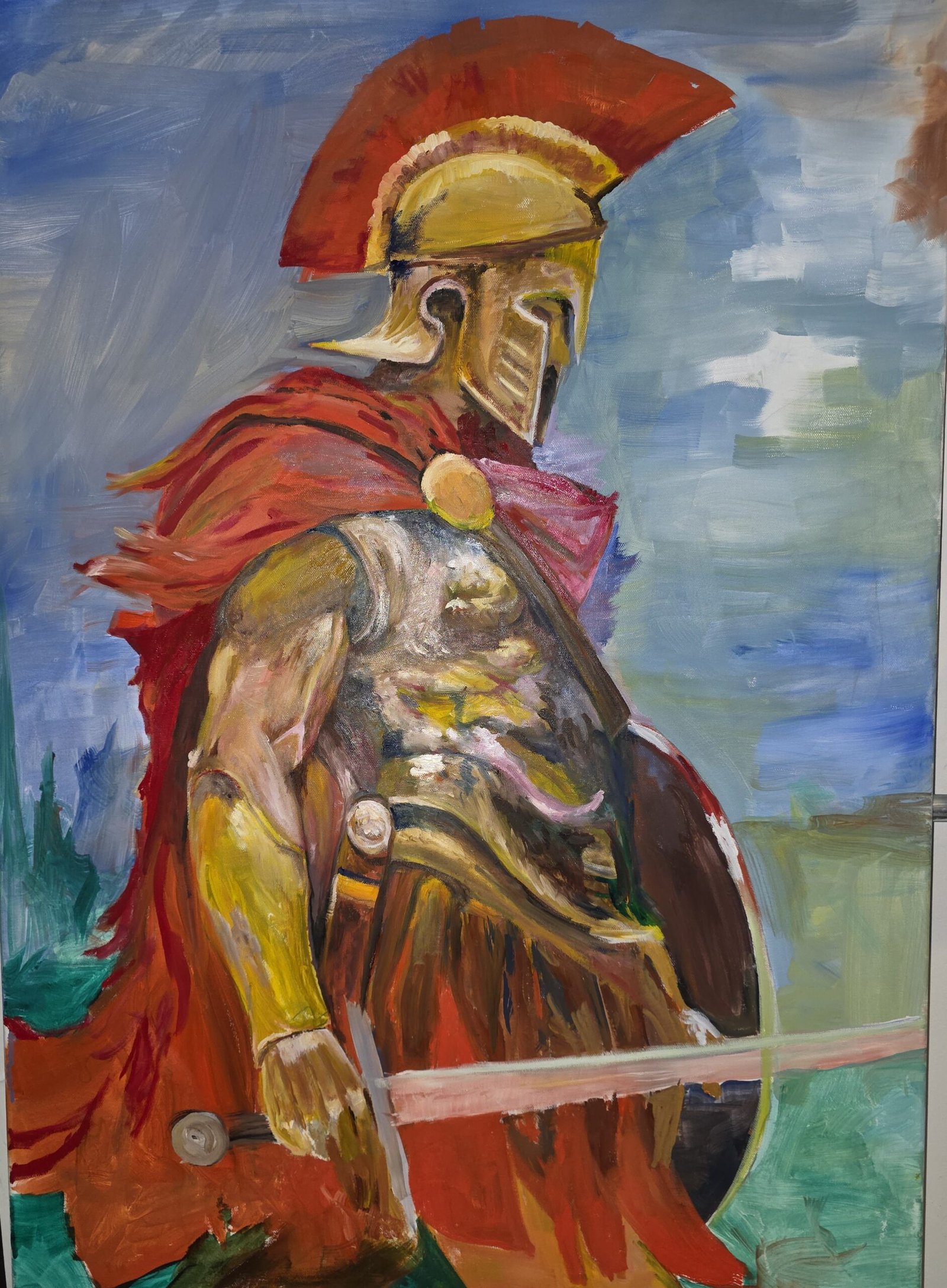 Spartan: Allen did an “artist copy” of this picture from “Pinterest” for the purpose of learning how to paint. It is intended to show case Allen’s abilities.